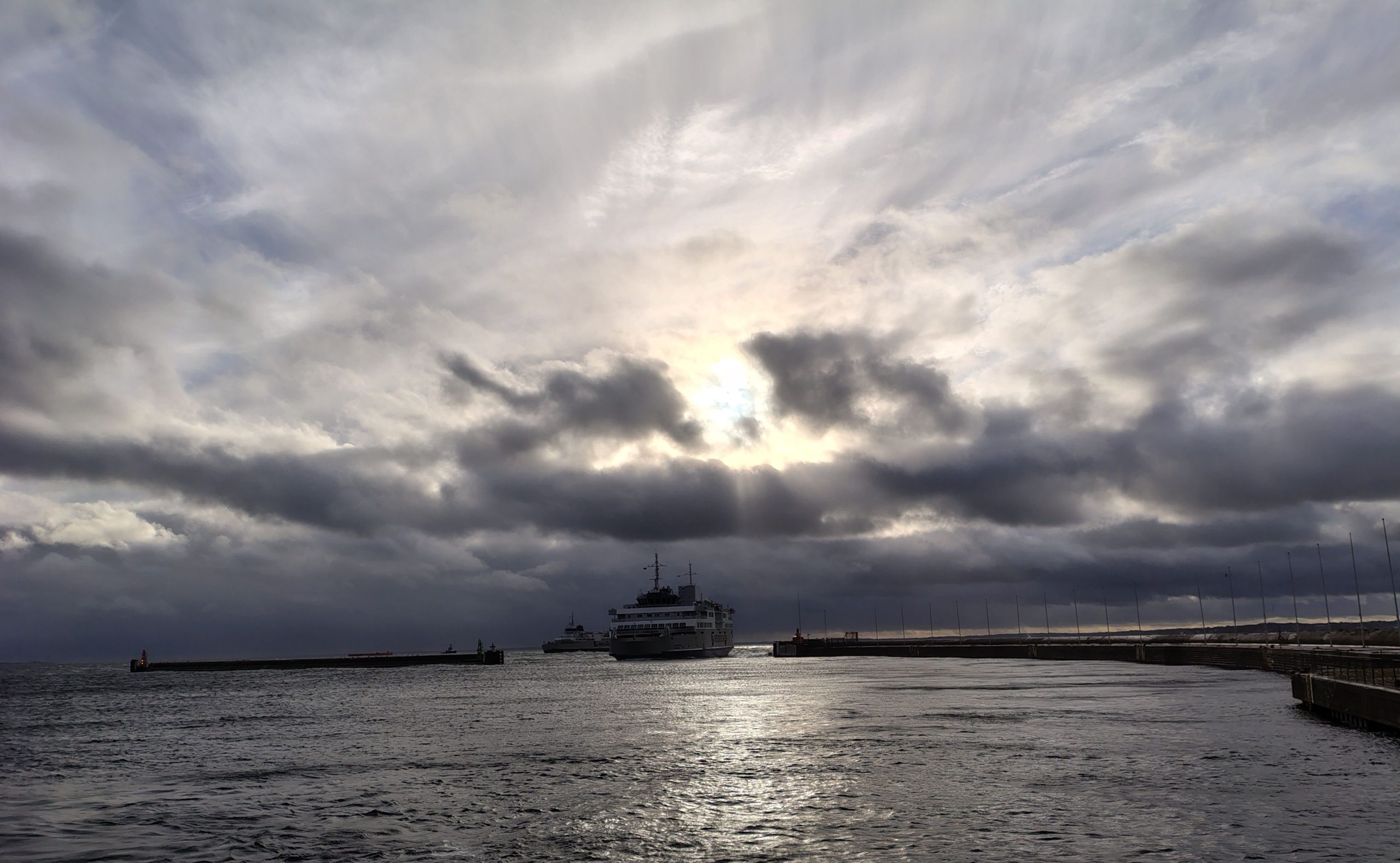 En av färjorna på Öresundslinjen på väg in i hamnen denna grå mulna dag