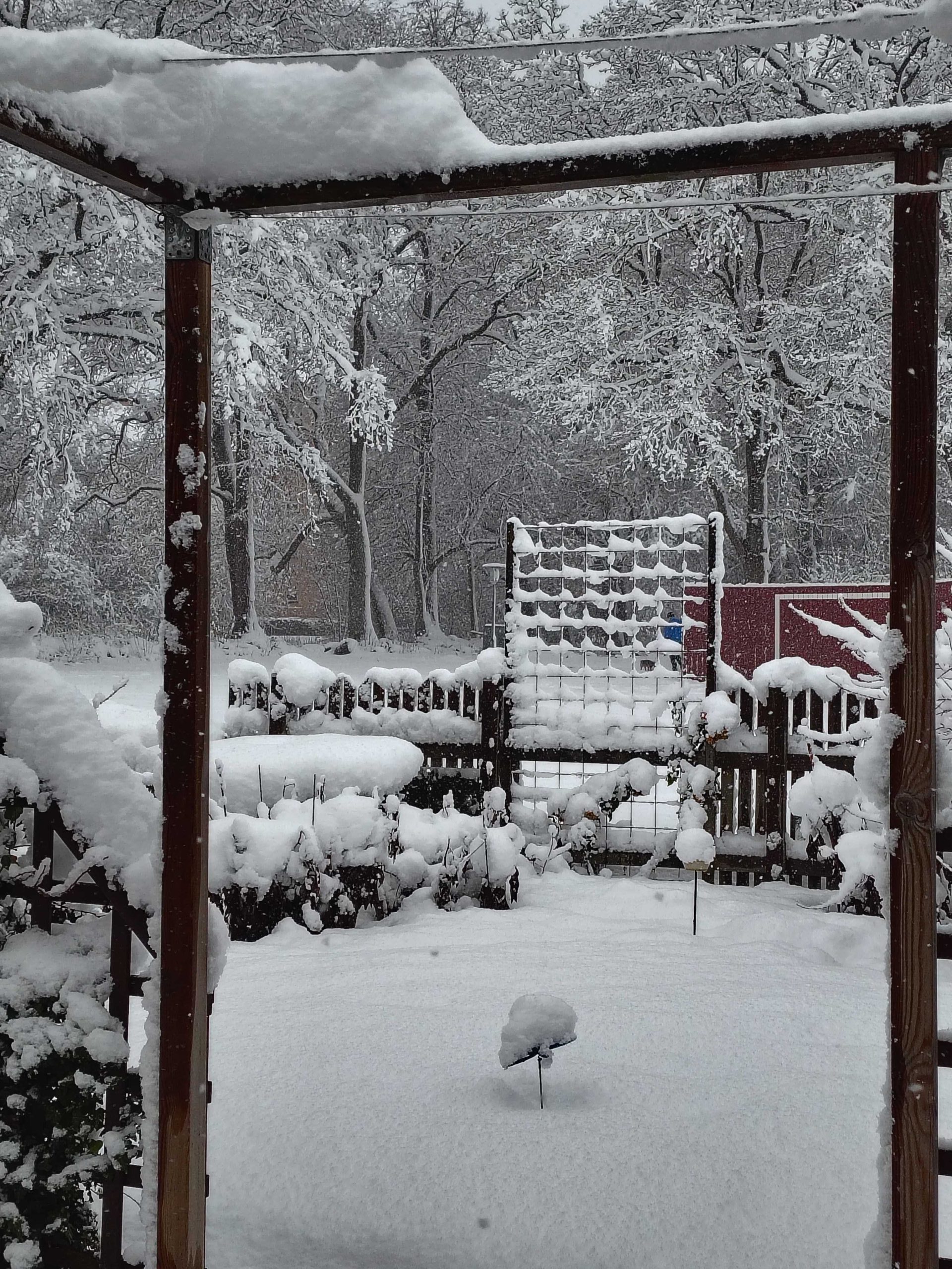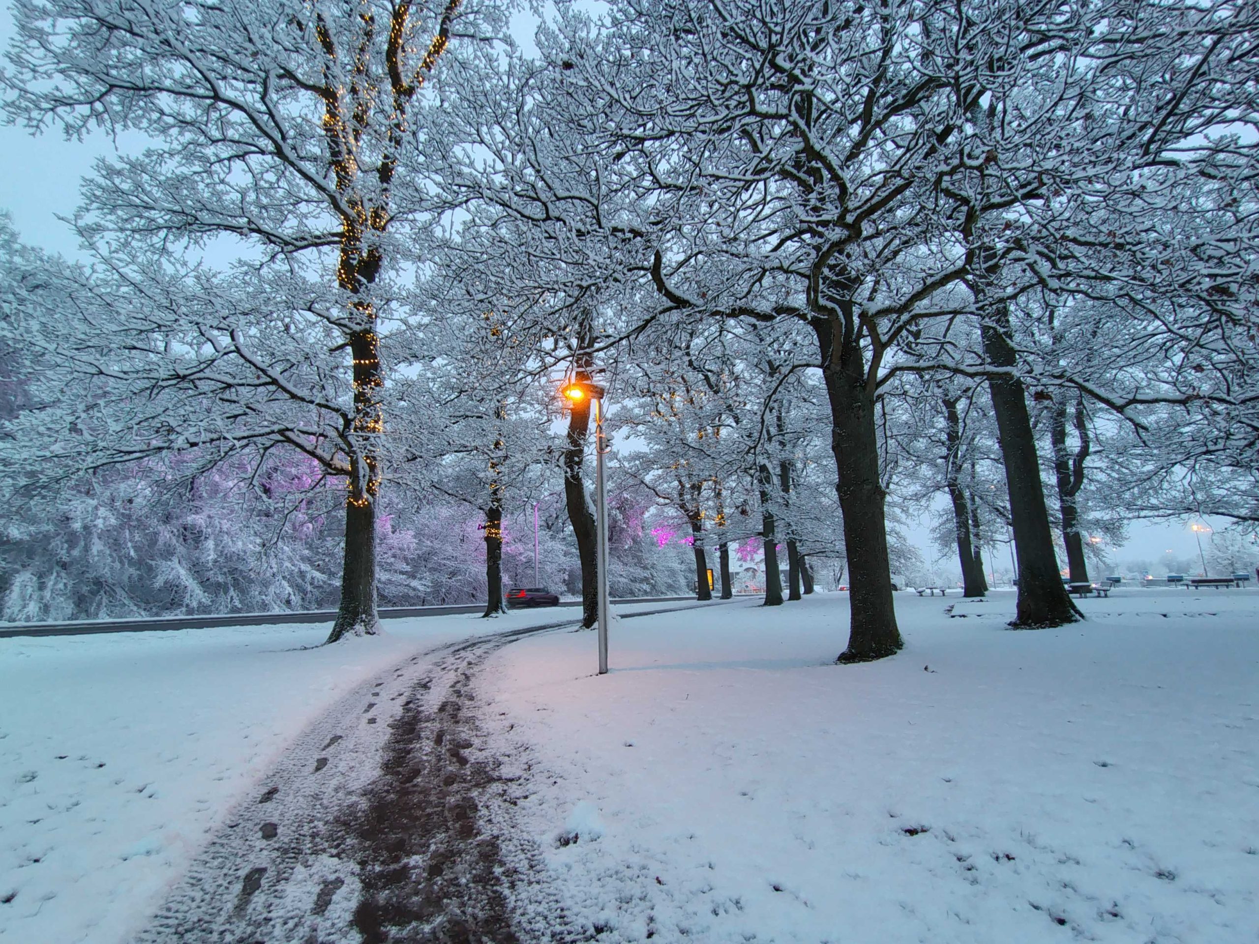 Det har snöat rejält hela dagen, det har säkert kommit mellan 20-35 cm. Vi har ett fantastiskt vinter landskap runt oss, snön har lagt sig på häckar och staket. Grenarna på träden hänger utefter marken av all snö. Var ute tidigt idag på morgonen på min promenad fick pulsa fram i snön. När jag kom upp till Väla köpcenter var det plogat och blev det lättare att ta sig fram, på eftermiddagen var det delvis plogat på gångbanor här i byn också. Jag går upp och runt köpcentret. Ett säkert kort där är gångarna är plogade och sandade. Snöandet avtog sent på torsdags kvällen den 20/11. För exakt ett år sedan snöade det också här i Ödåkra men inte som i dag bara lite vitt på backen.