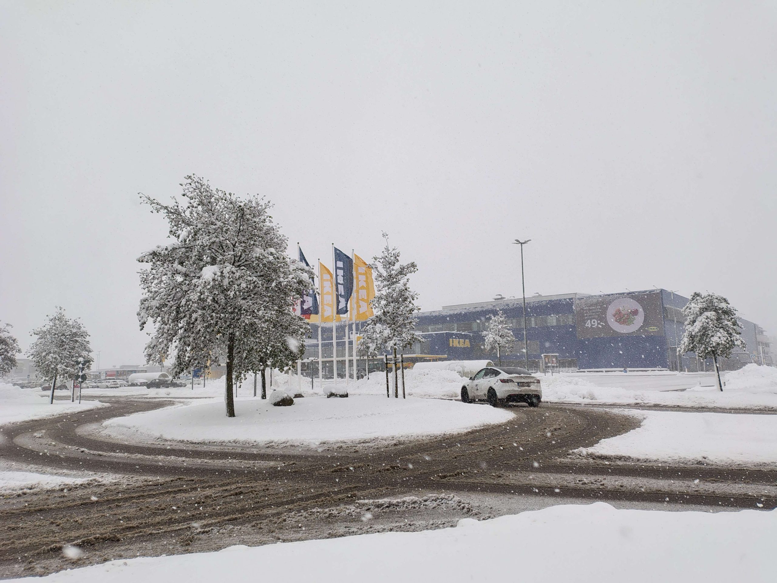 Moddigt och halkigt i cirkulationsplatsen vid IKEA parkeringen på Väla området.