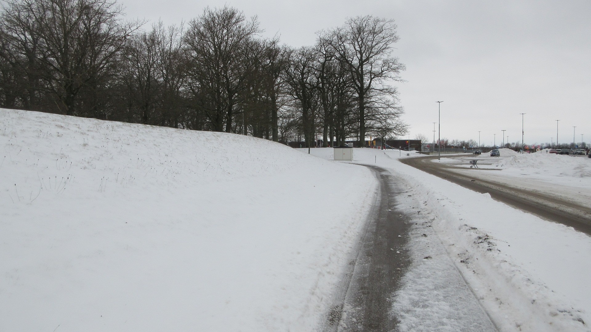 Mina rundor går oftast runt Köpcentret och faktiskt också inne på centrat man sliper blåsten och varmare är det. Här är det många upp plogade snöhögar stora ytor.